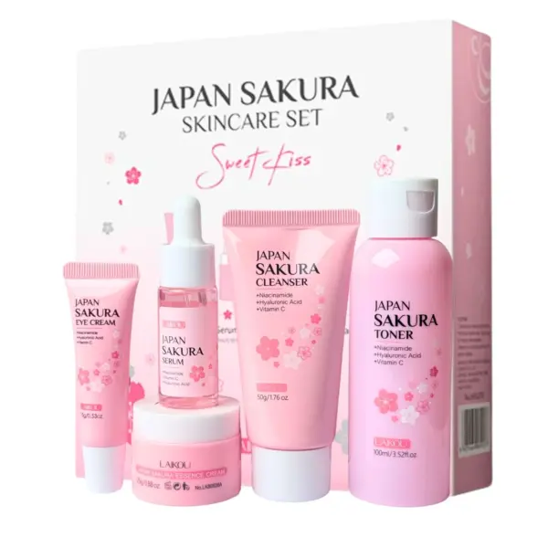 🌸 Laikou Japan Sakura Skincare 5Pcs Set – এক সেটেই পারফেক্ট স্কিন কেয়ার, প্রতিদিনের জন্য আদর্শ! 💖